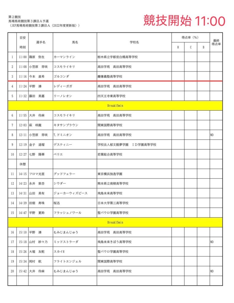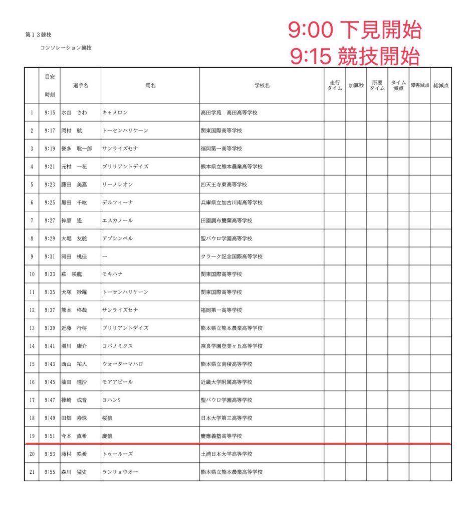 12月13日(土)から12月14日(日)、JRA馬事公苑にて行われます【第10回全日本高校生自馬選手権大会】の出番表を掲載致します。