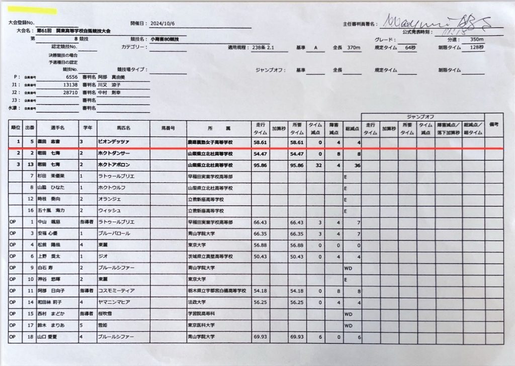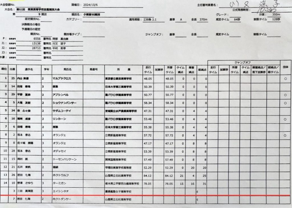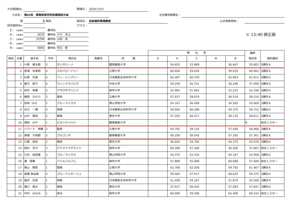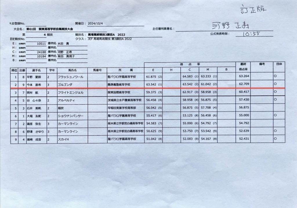 10月4日(土)から10月5日(日)、JRA馬事公苑にて行われました【第61回関東高等学校自馬競技大会】の結果表を掲載致します。